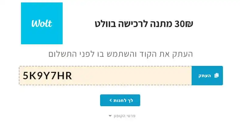 מיד לאחר מכן יקפוץ לכם חלון עם קוד הקופון, עליכם פשוט ללחוץ העתק ולהדביק את הקופון באתר בו תרצו לבצע את הרכישה